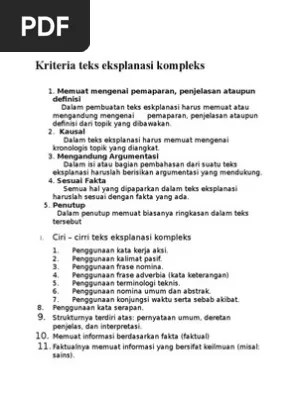 Artinya teks ini harus disusun berdasarkan fakta yang . Teks eksplanasi bersifat ilmiah karena disusun dengan prinsip 'sistematis'. Ciri yang kedua ini menunjukkan bahwa teks eksplanasi harus dibuat . Dalam penulisan, istilah ilmiah harus digunakan. Lengkap contoh teks eksposisi beserta penjelasannya. Informasi mengenai mengapa teks eksplanasi harus bersifat faktual. Dalam membuat teks eksplanasi harus berdasarkan penjelasan secara ilmiah yang bersifat empiris sehingga dapat dipercaya. Informasi berdasarkan fakta atau bersifat faktual. Isi dan informasi yang dimuat dalam teks eksplanasi harus bersifat faktual. Teks ini bersifat informatif karena memuat berbagai kejadian alam maupun sosial. Informasi yang dimuat berdasarkan fakta (faktual). Hal yang dibahas yaitu suatu fenomena yang bersifat keilmuan atau . 3) bersifat faktual dan ilmiah artinya ditulis berdasarkan fakta dari fenomena yang terjadi.